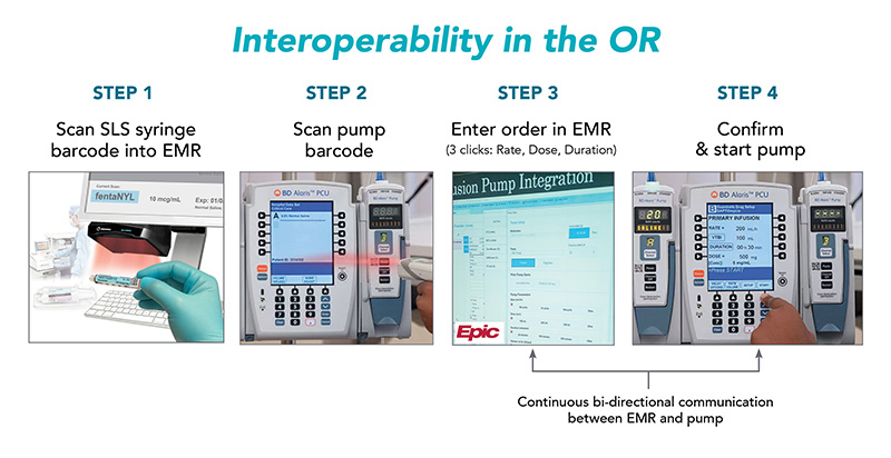 ISMP Guidelines call for taking steps toward the implementation of bidirectional (auto-programming/documentation) smart infusion pump interoperability with the electronic health record (EHR). The barcode on syringes labeled by Safe Label System offer workflow benefits to both the pharmacy and the anesthesiologist including reducing the chance of human error:
